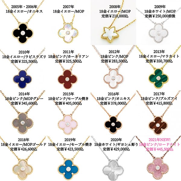 ヴァンクリーフでは毎年ホリデーシーズンに、アルハンブラの真ん中にダイヤを埋め込んだ限定のネックレスを販売します。