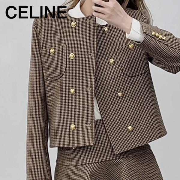 【やっぱり人気!】【セリーヌ】クロップド コピーラッカーツイード チェルシージャケット¥29700円 -